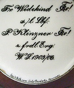 "Akademischer Ruder Verein sei`s Panier" Louis Huth vorm. Gebrüder Goedecke, dated 1906, on the porcelain stein lid insert immediately above,