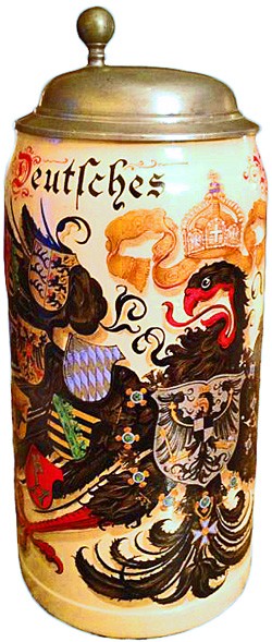 1 Litre Villeroy & Boch - Mettlach #1526 stein, dated 1892, celebrating all the states which were included in the second "Deutsches Reich" which was the Hohenzollern Empire of the three Emperors, Wilhelm I, Friedrich III & Wilhelm II, and which lasted from 1871 to 1918.