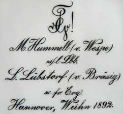 Handwritten mark on the Villeroy & Boch - Mettlach #1526 Triple association student stein, above, dated 1894.