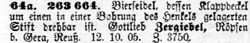 Gottlieb Zergiebel registered the DRGM 263664 on the 12th October 1905, where the lid assembly was fixed to the stein's handle by a screw, which acted as a hinge, and allowed the lid to be easily removed. This is known as the "Thüringer Deckel". The design was licenced for use by