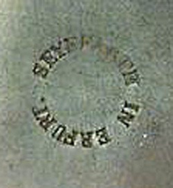 Pewterer's touch mark on the underside of the lid of the featured stein.