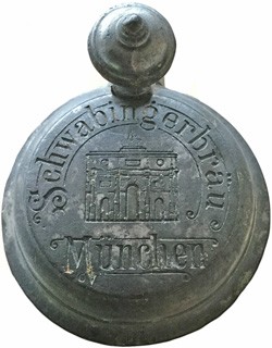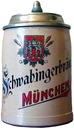 Schwabingerbräu brewery 0.4 litre stein, made by Merkelbach & Wick.Schwabingerbräu was a Guest House of the Schwabinger brewery with several rooms and a beer garden, and was the largest local in Schwabing at the beginning of the 20th century (1902). The Kar townhouse has occupied the site of the Schwabingerbräu, since 1964.