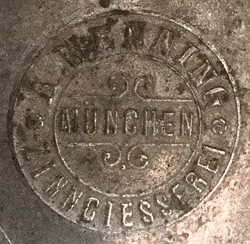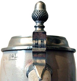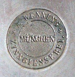 Pewterer's cast mark on the underside of the lid on featured stein above.