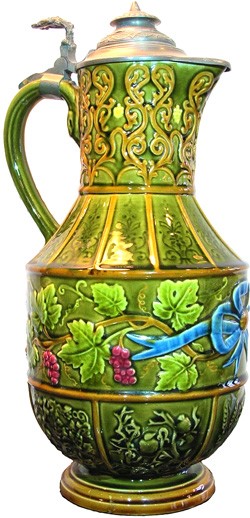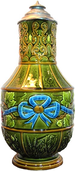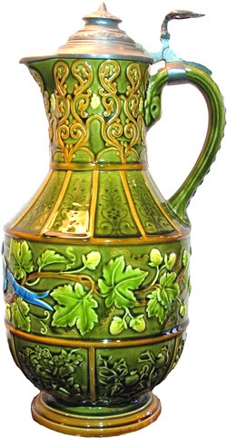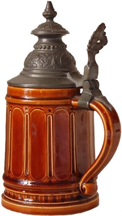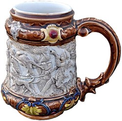 A rather more ornate stein, which has lost its lid. It is unknown which of the two factories this piece originated from.