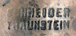 Pewterer's touch mark on the underside of the lid of the featured stein.