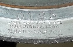 Basemark on pewter tankard with copper medallion, #0125 featured on the right.