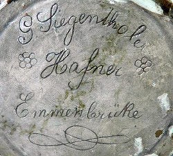 Basemark on featured stein, showing this was Hafnerware, a variety of earthenware.