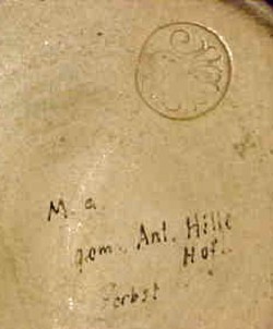 Artist's signature, Ant. Hille on Merkelbach & Wick stein, complete with Hoflieferant / Purveyor to the Royal Court, dated pre 1918.
