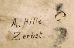 Artist's signature A. Hille on Marzi & Remy stein, complete with Hoflieferant / Purveyor to the Royal Court, dated pre 1918.