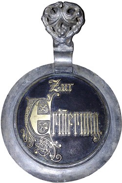 Pewterer's stamp on the underside of the featured lid.