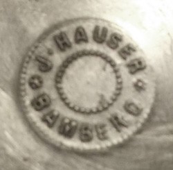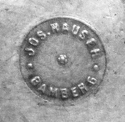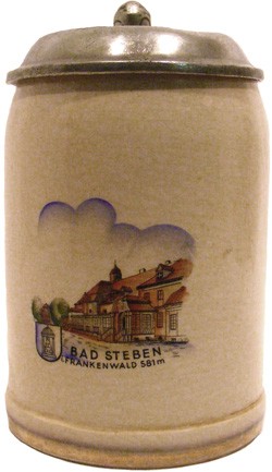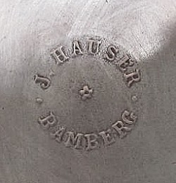 Cast pewterer's mark on lid of featured stein above. Lid is inscribed on top "Brauerei Stephan".