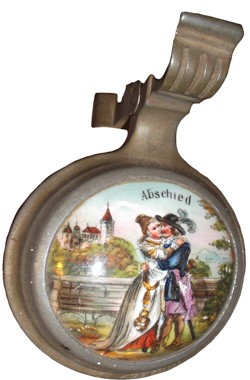 Cast pewterer's mark on lid with "Abscheid" insert (above).