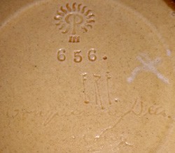 Rookwood Pottery #656, dated 1903, with E.R.F for Edith Regina Felton and underneath in longhand: Conquering Deer - Sioux