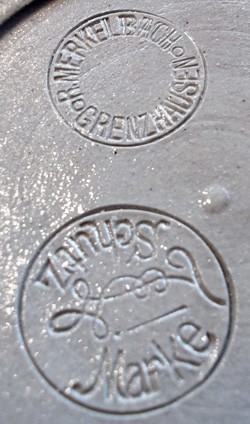 Reinhold Merkelbach roundel on featured stein, together with "Schutz Marke" or Copyright.Date range 1900-1921.
