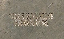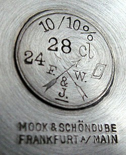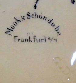 Mook und Schöndube's ink stamp on the above stein, together with the G.D. for the manufacturer, Gebrüder Dorfner of Hirschau.