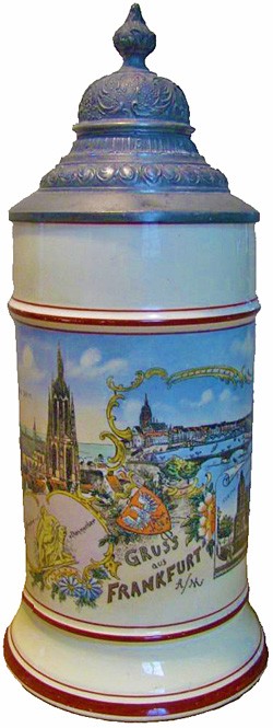 1/2 litre porcelain stein manufactured and probably decorated by the Gebrüder Dorfner.