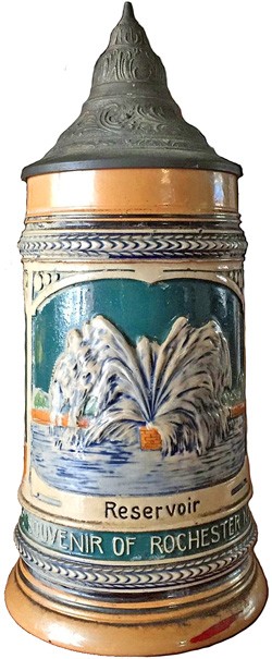 Picture of local reservoir on Souvenir of Rochester, New York 1/2 litre stein, of unknown manufacturer.