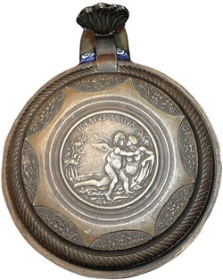 Lid on featured stein with "Jocatus Amatur", Laughing Lovers.This lid was almost certainly supplied by the pewterer August Karl Weygang.