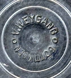 Victor Weygang, son of Heinrich Friedrich Carl Weygang,(b.1830-d.1875) was born on 13th July 1863., In 1888, Victor Weygang bought from his sister Helene Weygang, residential property and and rear buildings, courtyard etc and became the sole owner of the house and company. He sold pewter and glassware, toys, aluminum products, cast zinc, scales and weights. He also produced pewter soldiers and objects for everyday use, and also did repair and engraving work. He was active in the Drum corp of the "Gymnasium of 1848", was also guild-master, and therefore a highly regarded citizen. Victor Weygang celebrated on 27 September 1907, the 170-year anniversary of his company. In 1917 Victor's two sons Wilhelm and Theodor fell in the Great War. In 1919 Victor died. He was the last owner of the company in Göttingen.