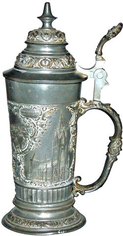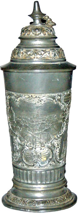 0.3 litre Pewter stein. The main tableau shows the town of Reutlingen