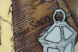 Painted mark on Villeroy & Boch - Mettlach master stein, 2.2Ltrs, #2261/1012, dated 1902.