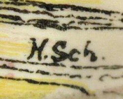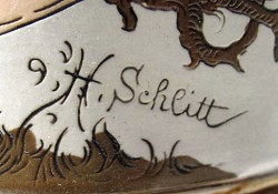 Painted mark on Villeroy & Boch - Mettlach #1909/1058, dated 1899 .