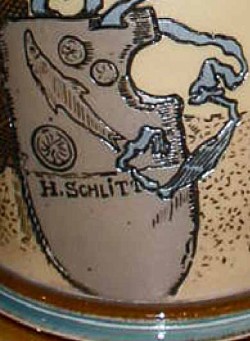 Impressed mark on Villeroy & Boch - Mettlach, 0.5 & 1.0Ltrs. #2580, dated 1900. Also on 2.4Ltr. #2524.