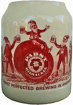 Brewery stein of Pabst of Milwaukee, dated 1898 - 1901. N.B. the transfer is on the front of the stein, German style,