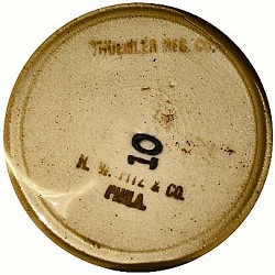 Straight ink stamp of Thuemler on a 10 ounce stein, this time with a good view of the typical annular rings around the base.