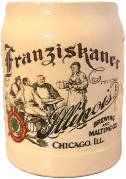 Franziskaner. Chicago, Illinois. Brewing and Malting Company. The transfer is on the front of the stein, German style,