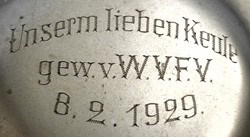 Dedication on the pressed steel lid above, dated 8/2/1929.