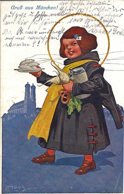 Printed post card, originally painted by Carl Moos. His signature can be seen bottom left.
