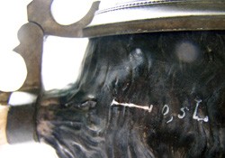 Capacity mark on the 0.5 litre featured stein (left). This is always on the outside, as opposed to Schierholz whose capacity marks are always on the inside.