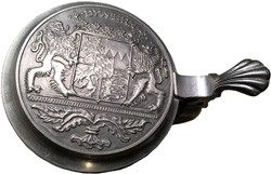 Lid on the featured Hasenbräu stein, above, showing Bavarian coat of arms.