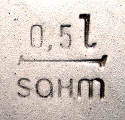 Combined Maker's mark and Capacity mark on a Pjungstädter Edel Pils brewery stein, made in the early 1950's.