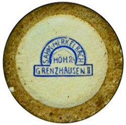Ink Stamp on porcelain "Gooseman", dated 1987, also showing a von Schierholz cross hatch.