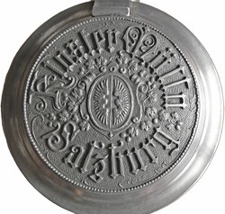 Cast pewter lid on the stein, left, with the motto ERZHERZ KAMMERLIEF** BRAUEREI GUGGENTAL **Abbreviation for Erzherzöglicher Kammerlieferant. One rank down from KuK Hoflieferant