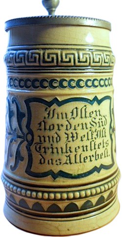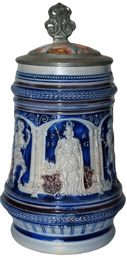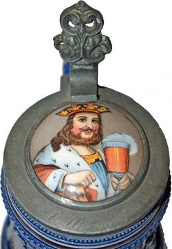 Pewter lid and "Gambrinus" ceramic insert, on featured J.W. Remy #128
